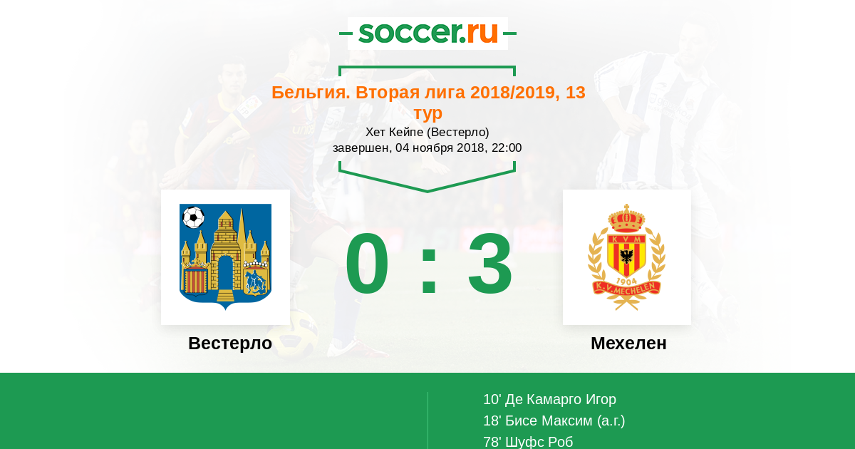 Бельгия. Про-Лига 28.11.2009 Вестерло Логотип футбольный клуб Вестерло 2:0 Логотип футбольный клуб Мехелен Мехелен