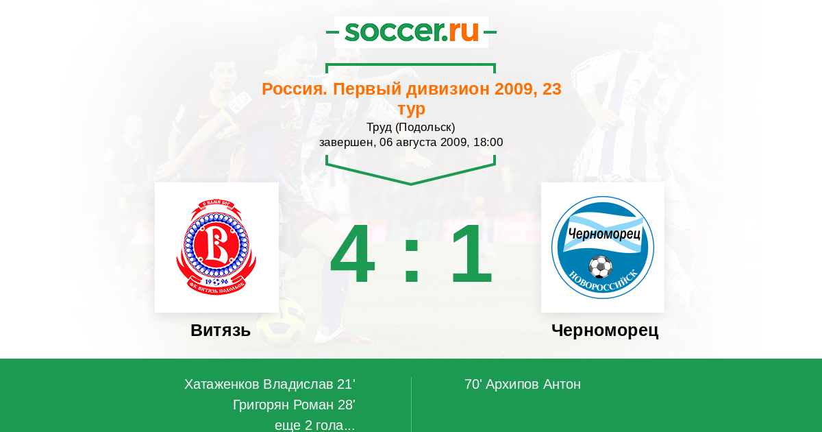 Россия. Вторая лига. Группа 3 23.04.2017 Витязь Логотип футбольный клуб Витязь (Подольск) 3:0 Логотип футбольный клуб Авангард (Курск) Авангард