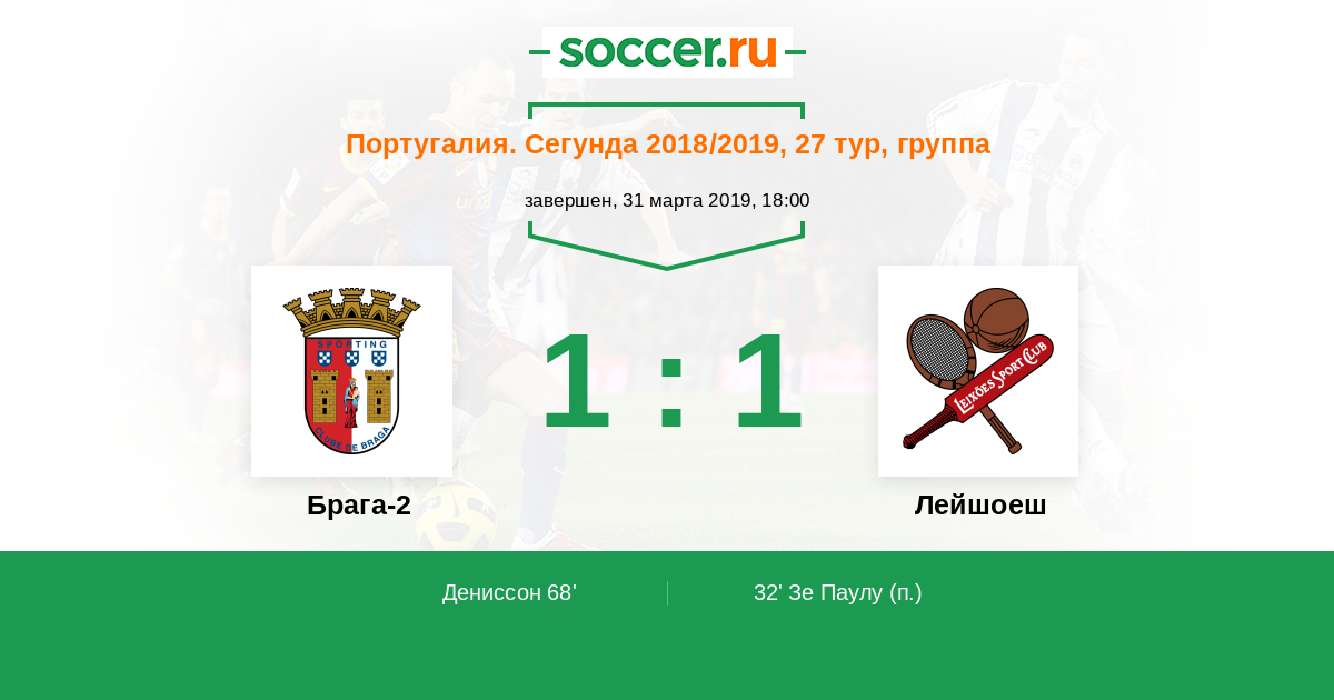 Брага-2 1:2 0:0 1:2