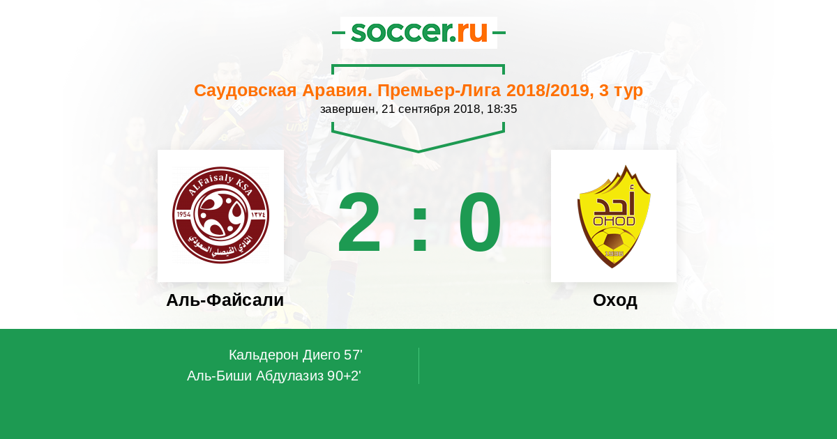 Саудовская Аравия. Первый дивизион 30.04.2009 Оход Логотип футбольный клуб Оход (Медина) 1:1 Логотип футбольный клуб Аль-Файсали (Хармах) Аль-Файсали