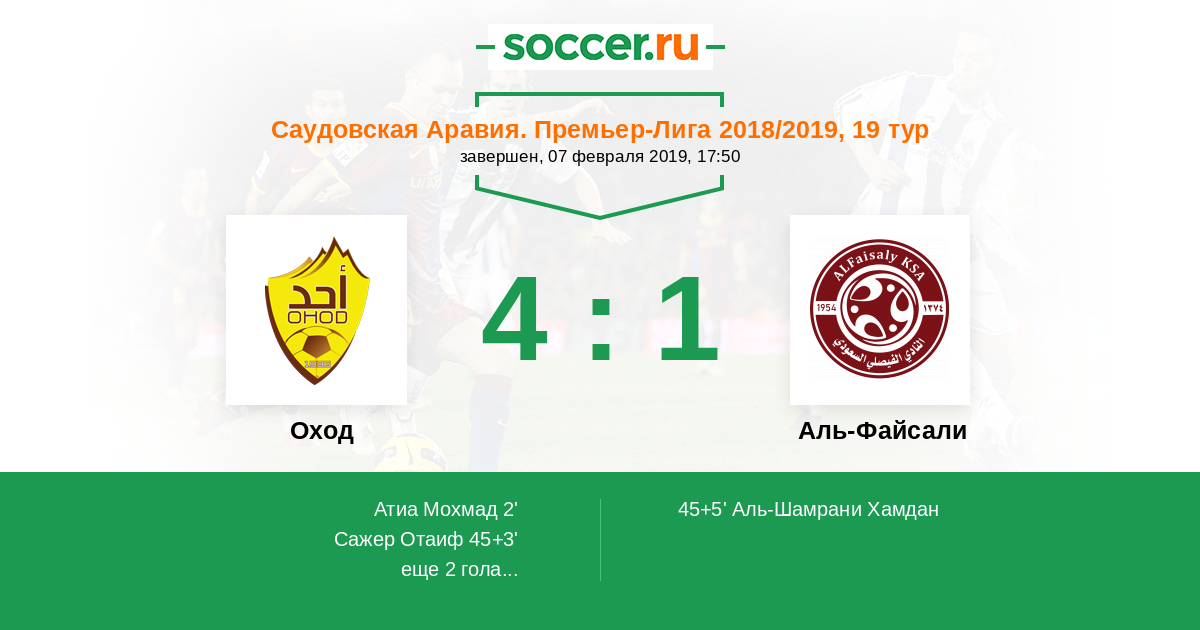 Саудовская Аравия. Премьер-Лига 21.09.2018 Аль-Файсали Логотип футбольный клуб Аль-Файсали (Хармах) 2:0 Логотип футбольный клуб Оход (Медина) Оход