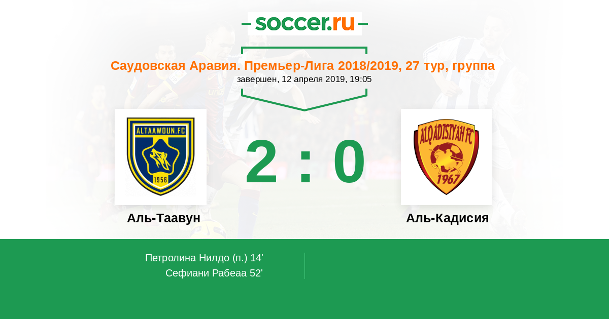 Саудовская Аравия. Премьер-Лига 21.12.2018 Аль-Кадисия Логотип футбольный клуб Аль-Кадисия (Эль-Хубар) 3:1 Логотип футбольный клуб Аль-Таавун (Бурайда) Аль-Таавун