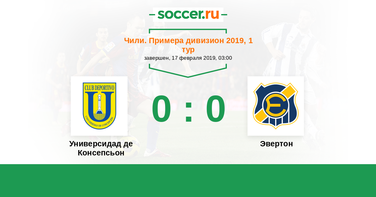 Чили. Примера дивизион 28.09.2019 Эвертон Логотип футбольный клуб Эвертон (Винья-дель-Мар) 1:0 Логотип футбольный клуб Универсидад де Консепсьон Универсидад де Консепсьон
