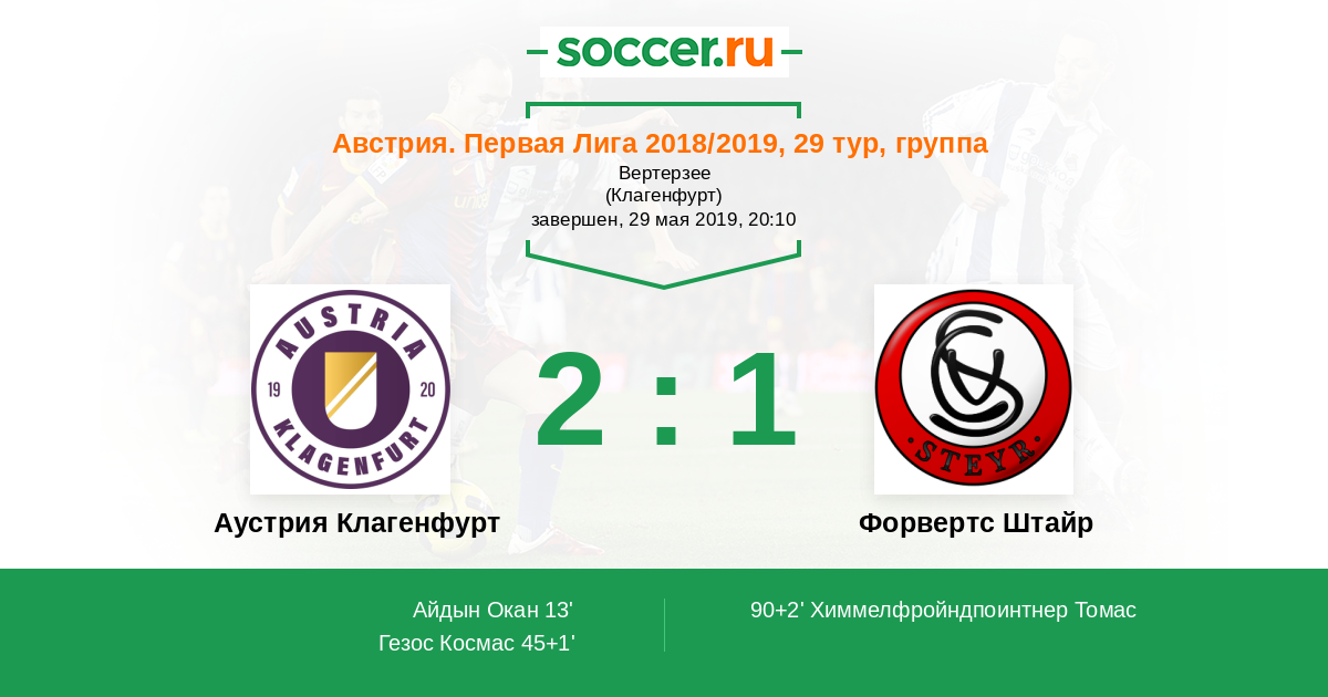 Австрия. Первая Лига 29.09.2019 Аустрия Клагенфурт Логотип футбольный клуб Аустрия Клагенфурт 1:1 Логотип футбольный клуб Форвертс Штайр Форвертс Штайр