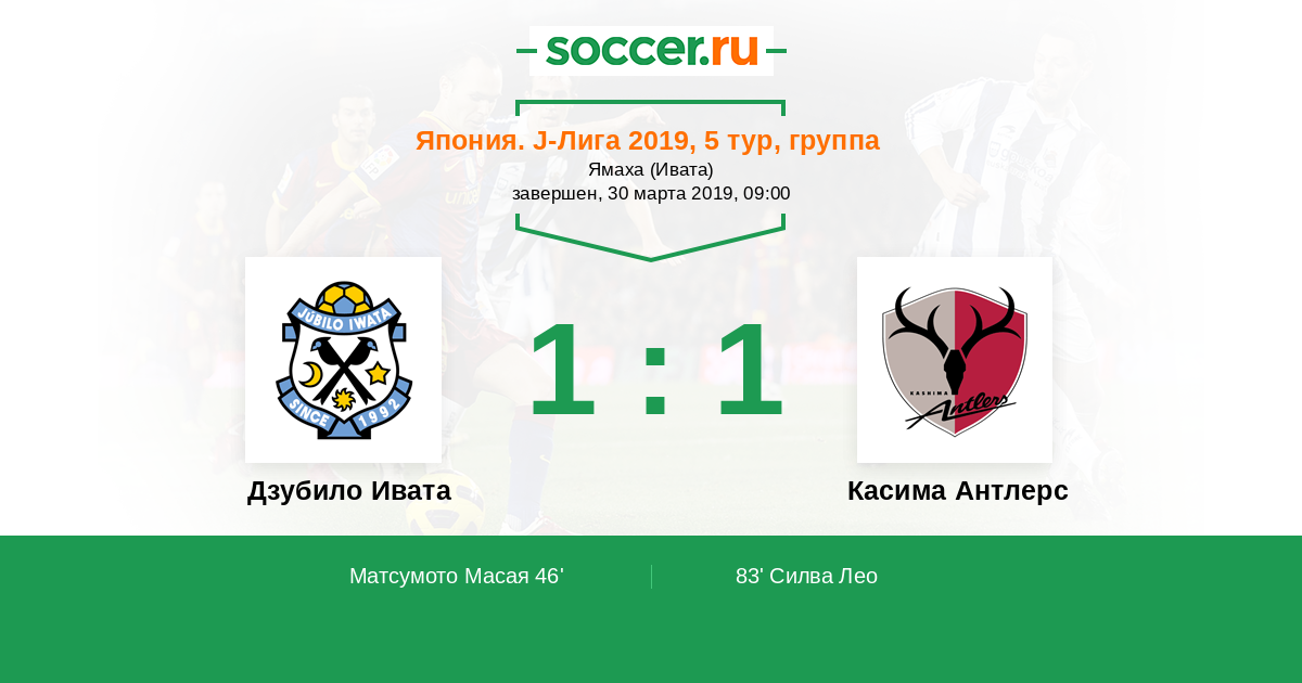 Япония. J-Лига 1 20.06.2009 Касима Антлерс Логотип футбольный клуб Касима Антлерс 1:0 Логотип футбольный клуб Дзубило Ивата Дзубило Ивата