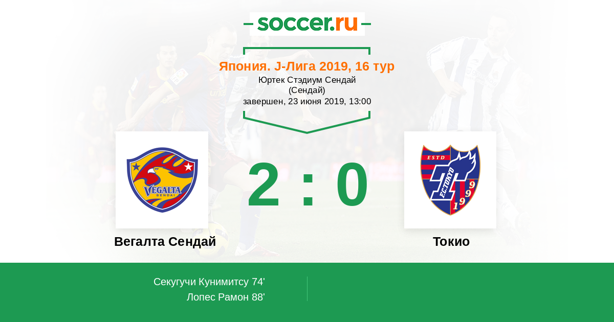Япония. J-Лига 1 10.08.2019 Токио Логотип футбольный клуб Токио 1:0 Логотип футбольный клуб Вегалта Сендай Вегалта Сендай