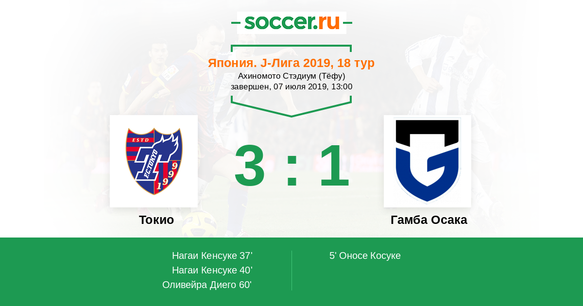 Япония. J-Лига 1 07.07.2012 Токио Логотип футбольный клуб Токио 3:2 Логотип футбольный клуб Гамба Осака Гамба Осака