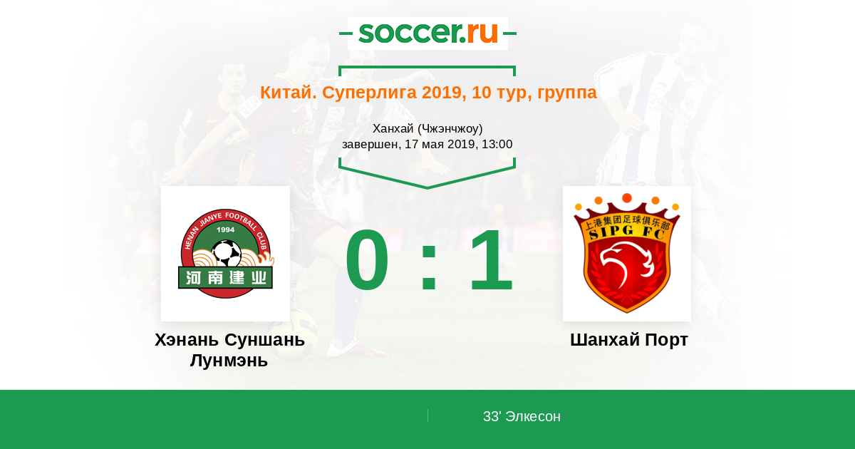 Китай. Суперлига 22.09.2019 Шанхай Порт Логотип футбольный клуб Шанхай Порт 2:1 Логотип футбольный клуб Хэнань Суншань Лунмэнь (Чжэнчжоу) Хэнань Суншань Лунмэнь