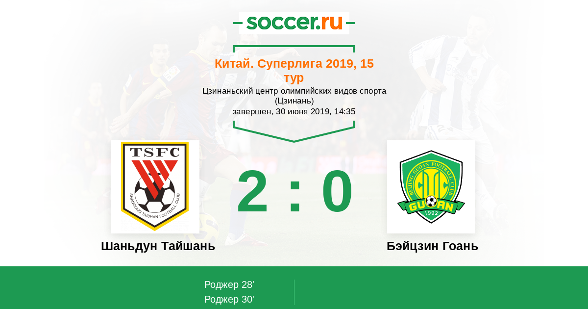Китай. Суперлига 29.05.2016 Шаньдун Тайшань Логотип футбольный клуб Шаньдун Тайшань (Цзинань) 0:2 Логотип футбольный клуб Бэйцзин Гоань (Пекин) Бэйцзин Гоань