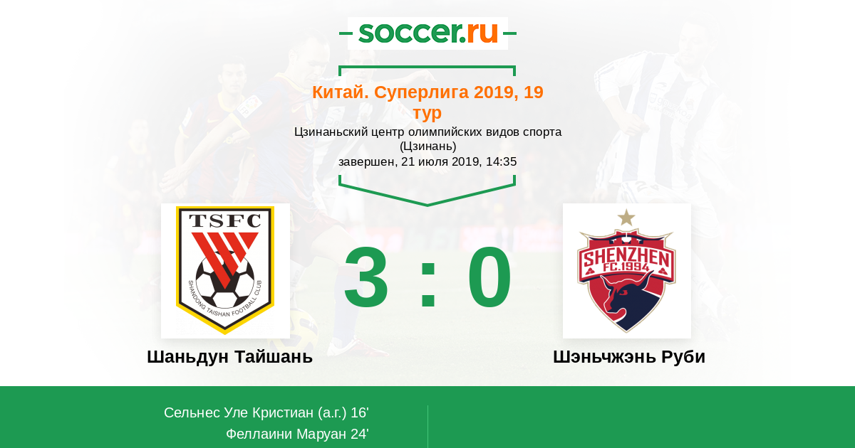 Китай. Суперлига 05.04.2019 Шэньчжэнь Руби Логотип футбольный клуб Шэньчжэнь Руби 1:1 Логотип футбольный клуб Шаньдун Тайшань (Цзинань) Шаньдун Тайшань