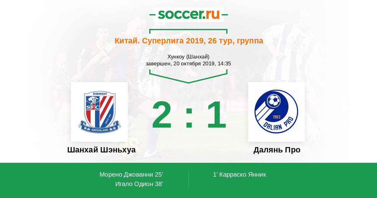 Китай. Суперлига 26.05.2019 Далянь Про Логотип футбольный клуб Далянь Про 1:0 Логотип футбольный клуб Шанхай Шэньхуа Шанхай Шэньхуа