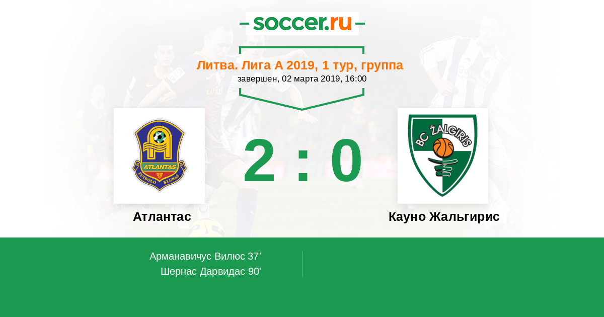 Литва. Лига А 02.04.2016 Атлантас Логотип футбольный клуб Атлантас (Клайпеда) 3:1 Логотип футбольный клуб Кауно Жальгирис (Каунас) Кауно Жальгирис