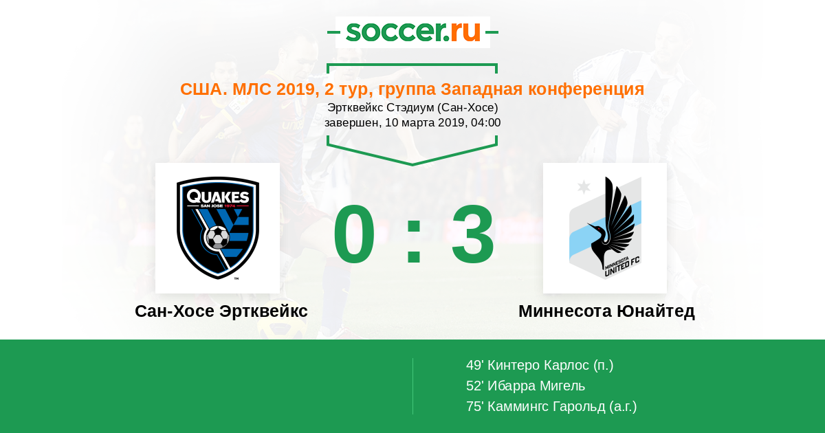 США. МЛС 04.07.2019 Миннесота Юнайтед Логотип футбольный клуб Миннесота Юнайтед 3:1 Логотип футбольный клуб Сан-Хосе Эртквейкс Сан-Хосе Эртквейкс