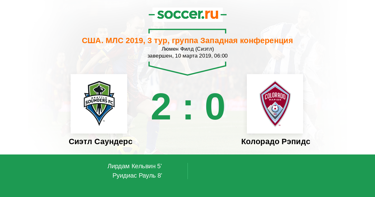 США. МЛС 14.04.2012 Сиэтл Саундерс Логотип футбольный клуб Сиэтл Саундерс 1:0 Логотип футбольный клуб Колорадо Рэпидс (Денвер) Колорадо Рэпидс