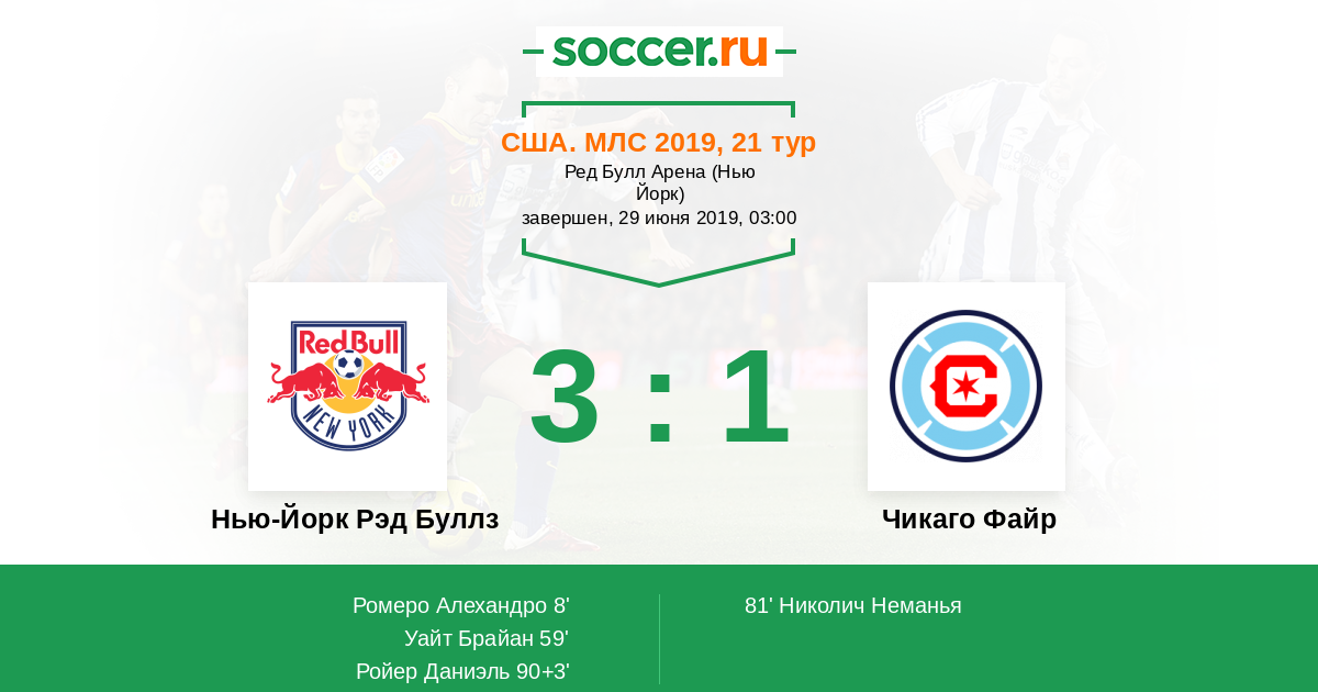 США. МЛС 30.03.2019 Чикаго Файр Логотип футбольный клуб Чикаго Файр 1:0 Логотип футбольный клуб Нью-Йорк Рэд Буллз Нью-Йорк Рэд Буллз