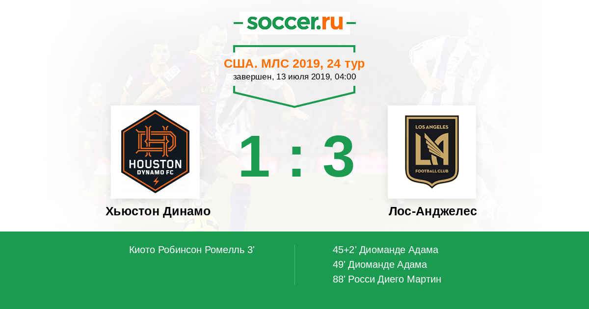 США. МЛС 26.09.2019 Лос-Анджелес Логотип футбольный клуб Лос-Анджелес 3:1 Логотип футбольный клуб Хьюстон Динамо Хьюстон Динамо