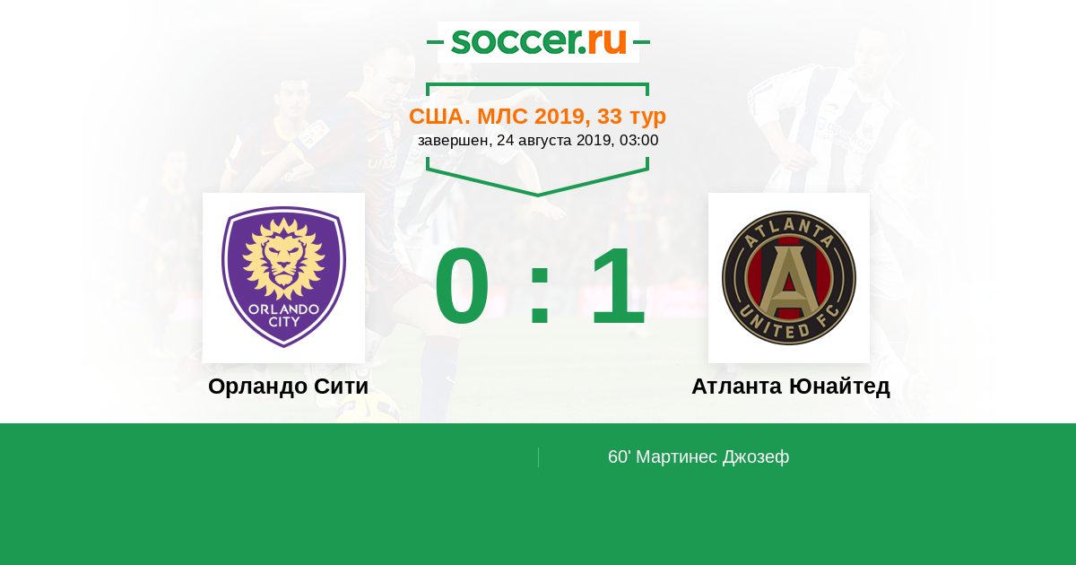 США. МЛС 25.08.2018 Орландо Сити Логотип футбольный клуб Орландо Сити 1:2 Логотип футбольный клуб Атланта Юнайтед Атланта Юнайтед