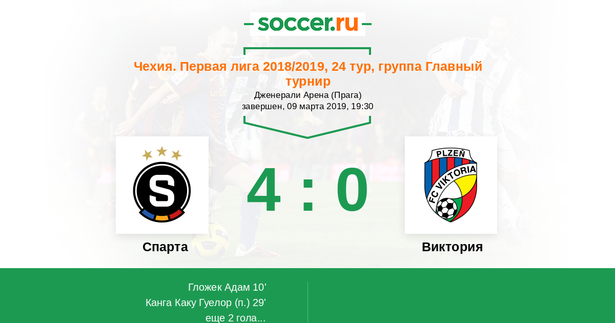 Чехия. Первая Лига 15.05.2019 Виктория Логотип футбольный клуб Виктория (Пльзень) 4:0 Логотип футбольный клуб Спарта (Прага) Спарта