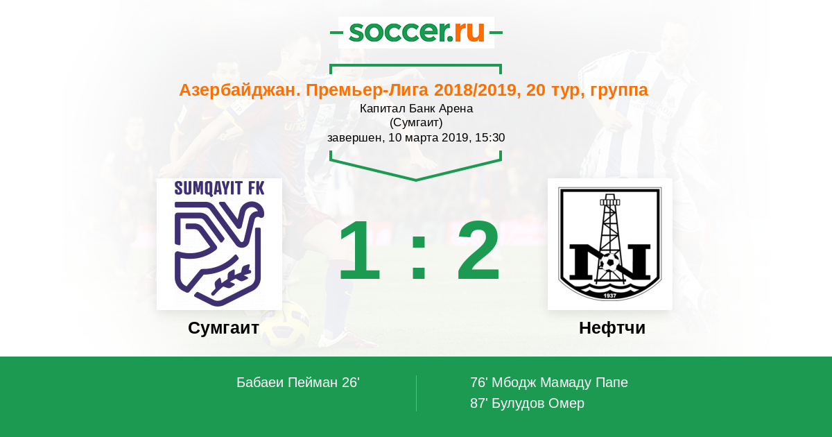 Азербайджан. Премьер-Лига 17.11.2012 Нефтчи Логотип футбольный клуб Нефтчи (Баку) 8:1 Логотип футбольный клуб Сумгаит Сумгаит