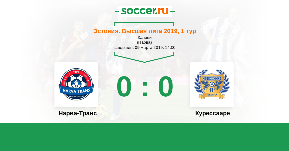 Эстония. Высшая лига 20.06.2009 Нарва-Транс Логотип футбольный клуб Нарва-Транс 2:0 Логотип футбольный клуб Курессааре Курессааре