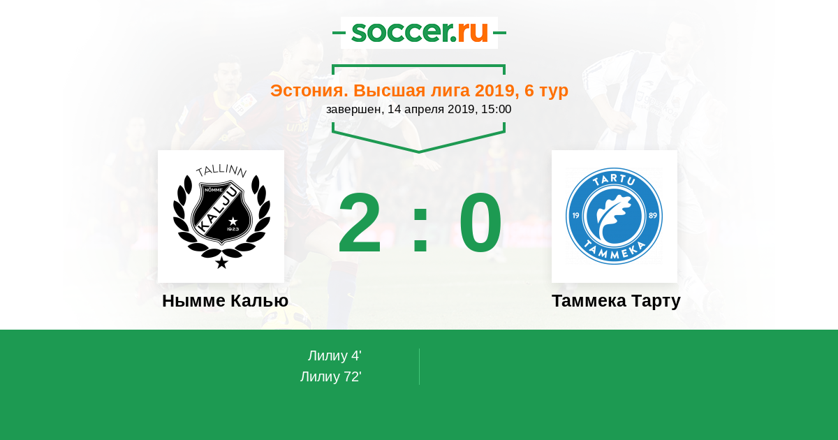 Эстония. Высшая лига 28.04.2014 Нымме Калью Логотип футбольный клуб Нымме Калью (Таллин) 6:0 Логотип футбольный клуб Таммека Тарту Таммека Тарту