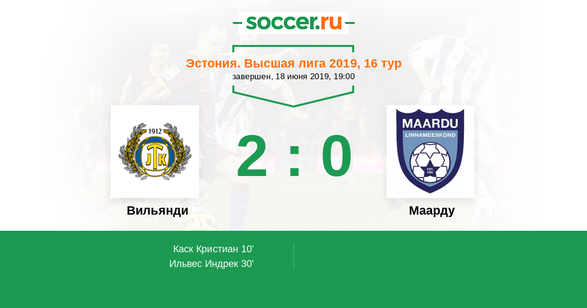 Эстония. Высшая лига 20.04.2019 Маарду Логотип футбольный клуб Маарду 0:0 Логотип футбольный клуб Вильянди Вильянди