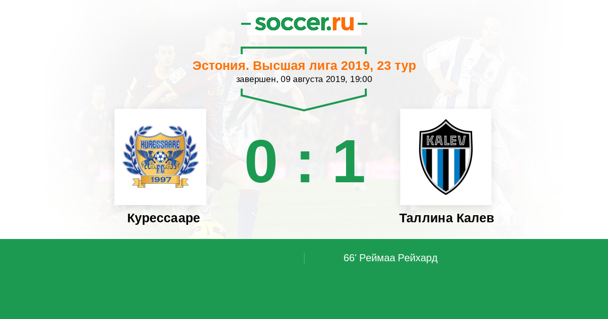 Эстония. Высшая лига 26.05.2009 Курессааре Логотип футбольный клуб Курессааре 0:1 Логотип футбольный клуб Таллина Калев Таллина Калев