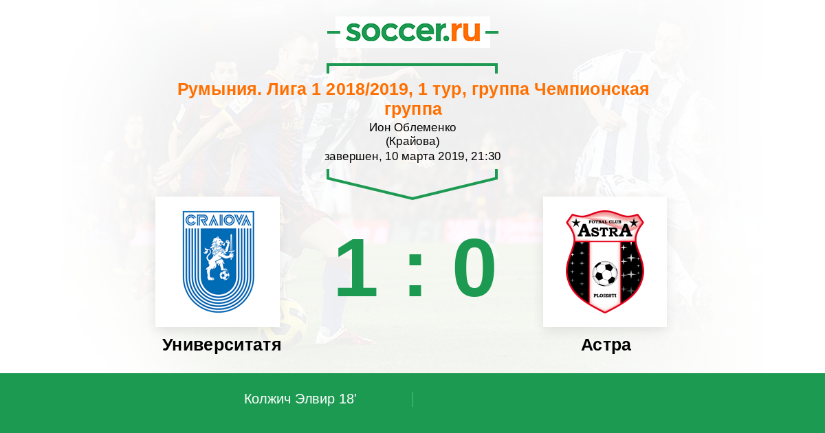 Румыния. Лига 1 10.03.2018 Университатя Крайова Логотип футбольный клуб Университатя Крайова 1:0 Логотип футбольный клуб Астра (Джурджу) Астра