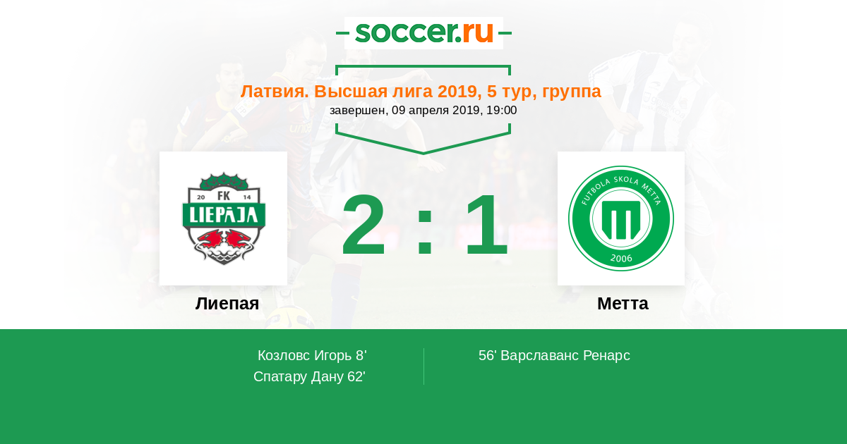 Латвия. Высшая лига 17.04.2015 Метта Логотип футбольный клуб Метта (Рига) 1:4 Логотип футбольный клуб Лиепая Лиепая