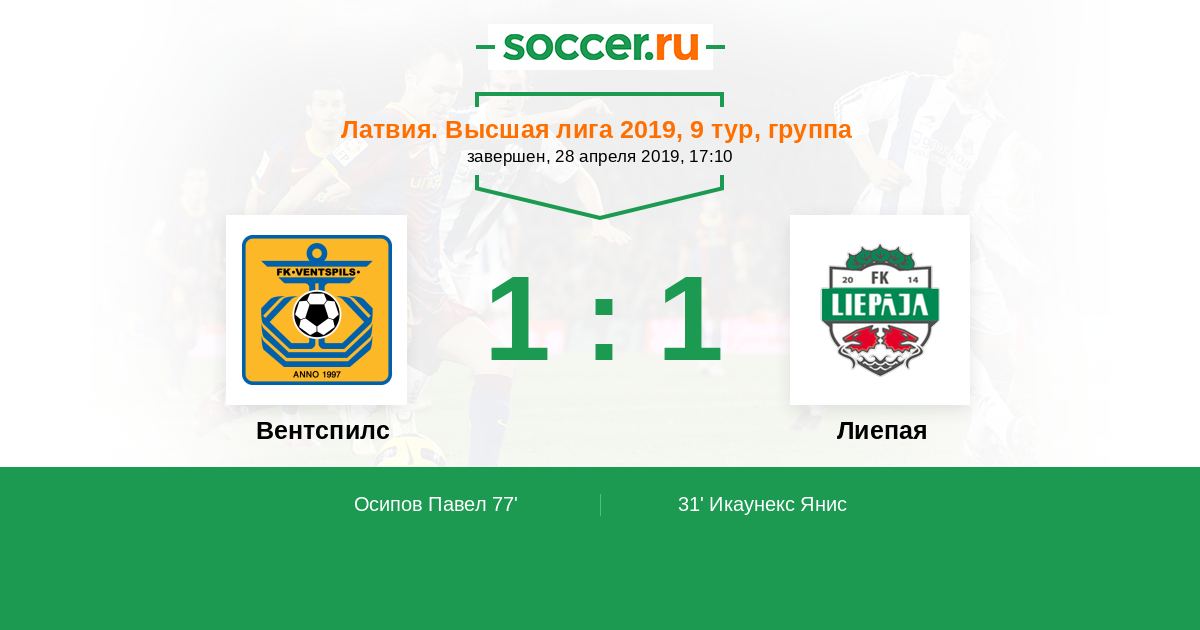 Латвия. Высшая лига 12.04.2014 Вентспилс Логотип футбольный клуб Вентспилс 3:2 Логотип футбольный клуб Лиепая Лиепая