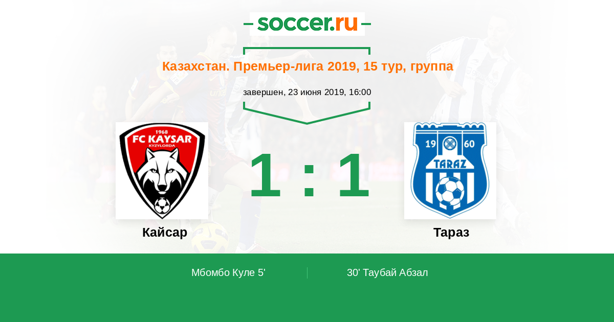 Казахстан. Премьер-лига 01.07.2020 Кайсар Логотип футбольный клуб Кайсар (Кызылорда) 1:1 Логотип футбольный клуб Тараз Тараз