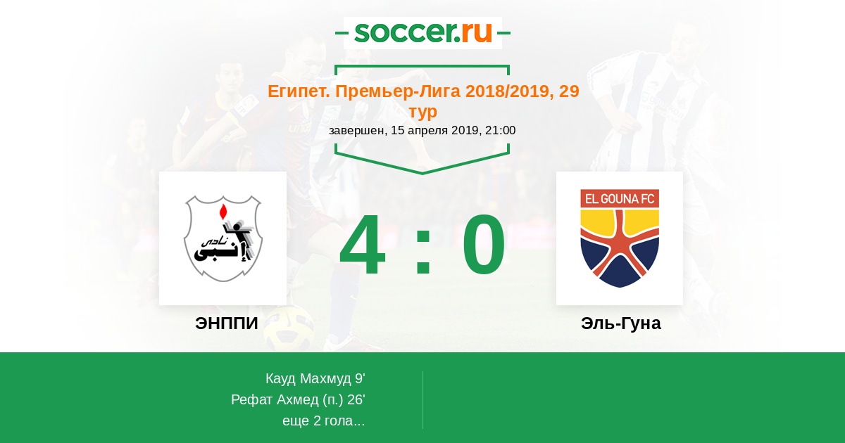 Египет. Премьер-Лига 10.04.2014 Эль-Гуна Логотип футбольный клуб Эль-Гуна 0:0 Логотип футбольный клуб ЭНППИ (Каир) ЭНППИ