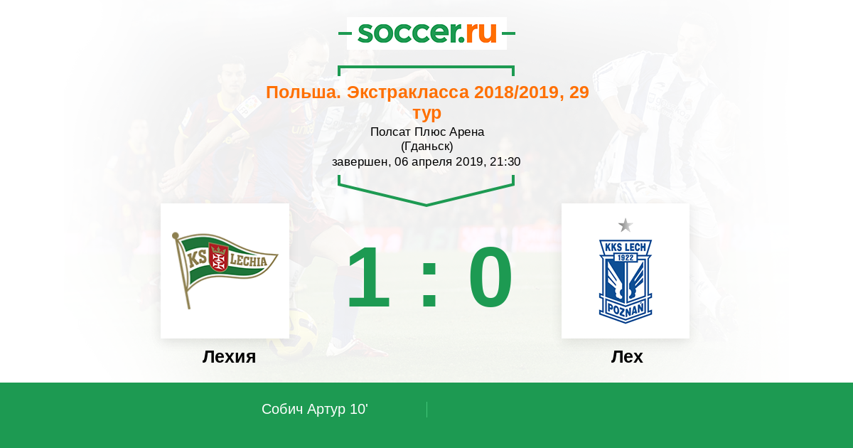 Польша. Экстракласса 15.05.2019 Лех Логотип футбольный клуб Лех (Познань) 2:1 Логотип футбольный клуб Лехия (Гданьск) Лехия
