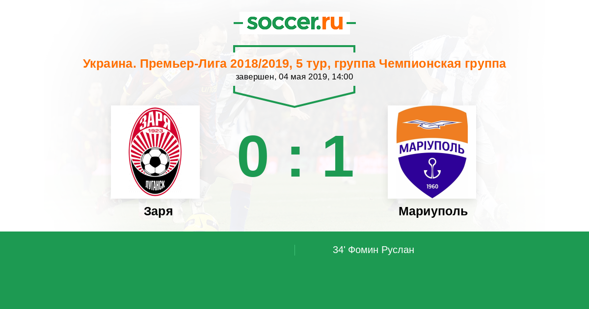 Украина. Премьер-Лига 19.05.2013 Ильичевец Логотип футбольный клуб Ильичевец (Мариуполь) 1:2 Логотип футбольный клуб Заря (Луганск) Заря