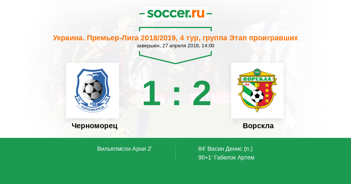 Украина. Премьер-Лига 25.05.2019 Ворскла Логотип футбольный клуб Ворскла (Полтава) 1:2 Логотип футбольный клуб Черноморец (Одесса) Черноморец