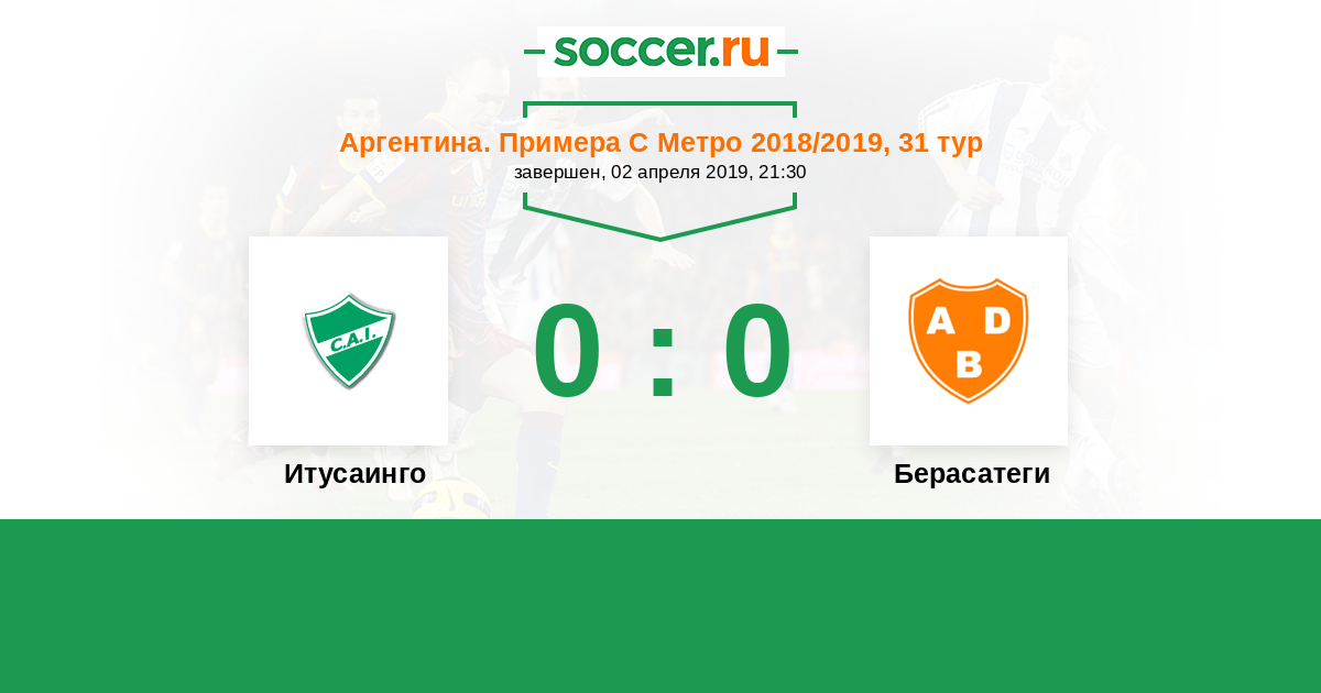 Аргентина. Примера С Метро 30.03.2018 Берасатеги Логотип футбольный клуб Берасатеги (Буэнос-Айрес) 1:1 Логотип футбольный клуб Итусаинго Итусаинго