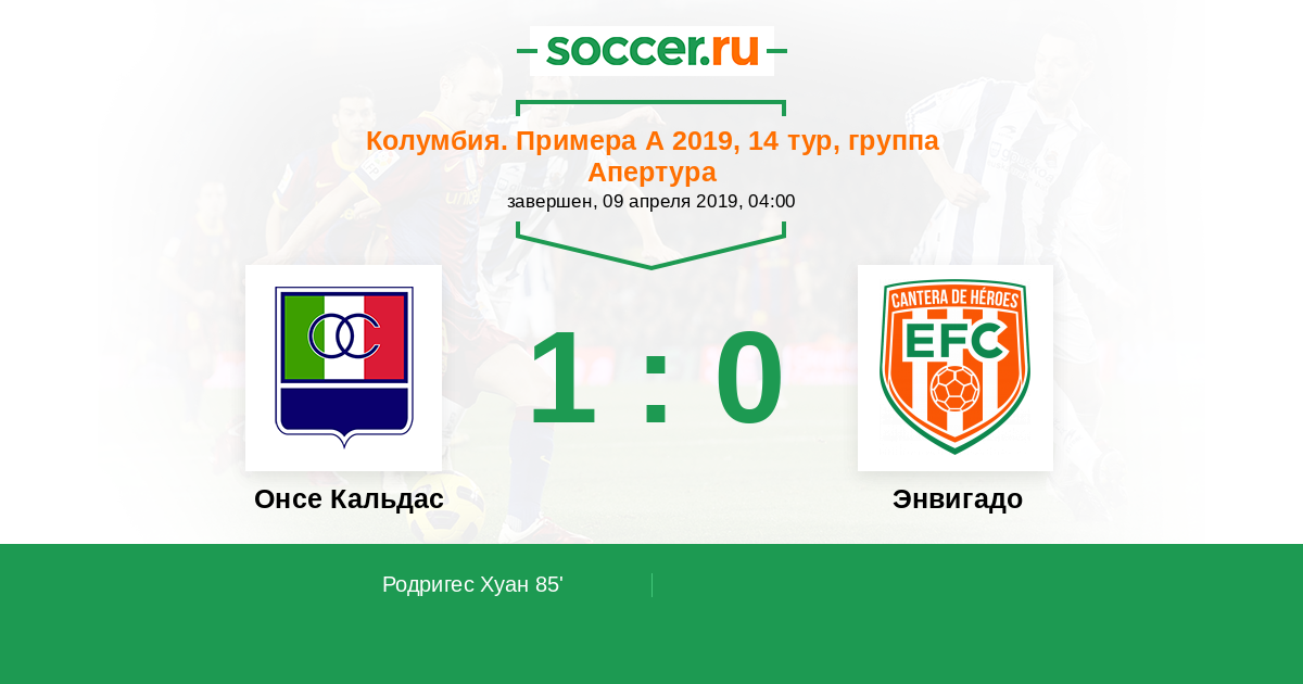 Колумбия. Примера А 01.10.2019 Энвигадо Логотип футбольный клуб Энвигадо 1:3 Логотип футбольный клуб Онсе Кальдас (Манисалес) Онсе Кальдас