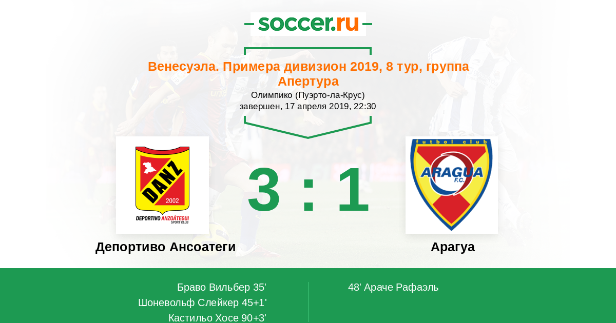Арагуа 1:2 0:0 1:2