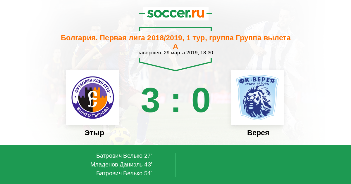 Верея 3:5 2:4 1:1