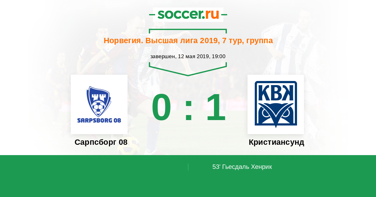 Норвегия. Высшая лига 01.07.2018 Кристиансунд Логотип футбольный клуб Кристиансунд 1:1 Логотип футбольный клуб Сарпсборг 08 Сарпсборг 08