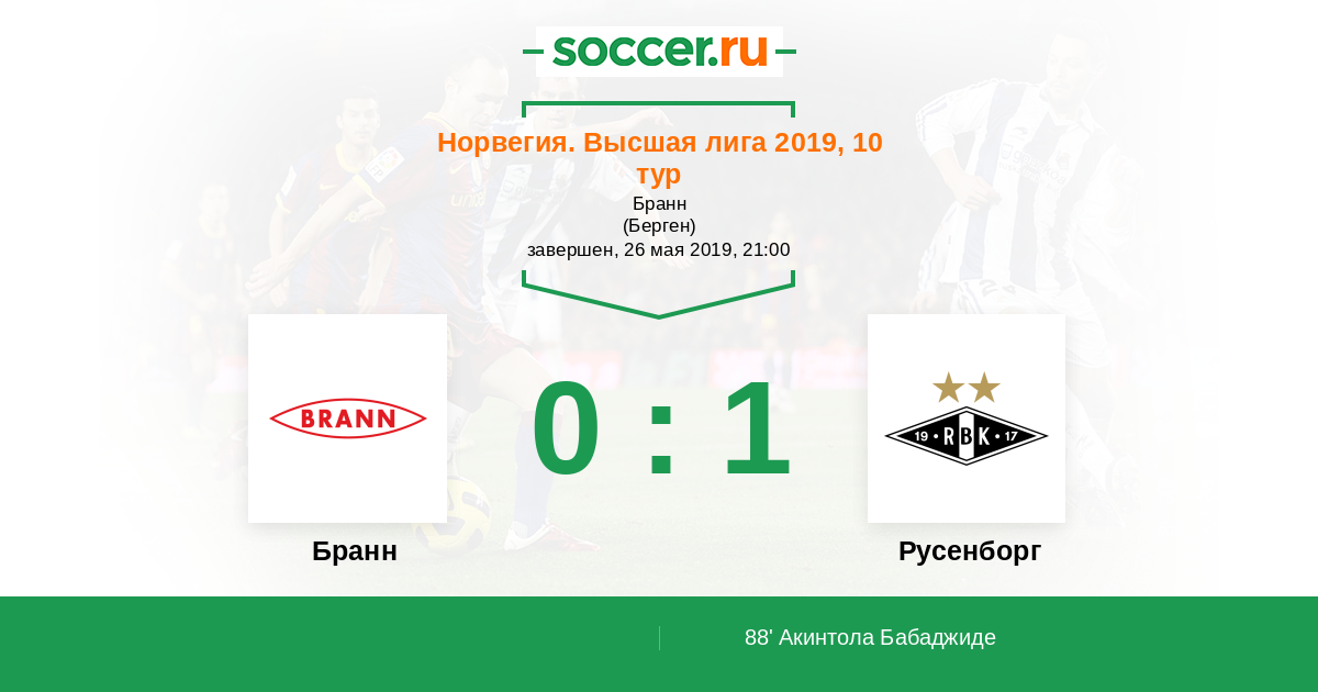 Норвегия. Высшая лига 27.05.2018 Русенборг Логотип футбольный клуб Русенборг (Тронхейм) 1:2 Логотип футбольный клуб Бранн (Берген) Бранн