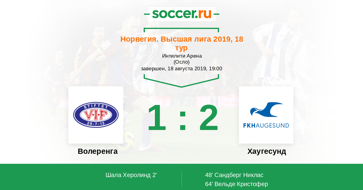 Норвегия. Высшая лига 15.07.2020 Волеренга Логотип футбольный клуб Волеренга (Осло) 1:0 Логотип футбольный клуб Хаугесунд Хаугесунд