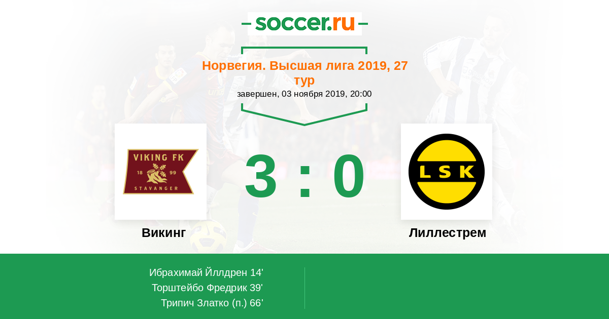 Норвегия. Высшая лига 15.04.2023 Викинг Логотип футбольный клуб Викинг (Ставангер) 2:0 Логотип футбольный клуб Лиллестрем Лиллестрем