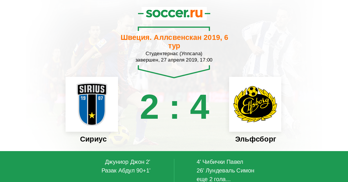 Швеция. Аллсвенскан 14.05.2017 Сириус Логотип футбольный клуб Сириус (Уппсала) 4:1 Логотип футбольный клуб Эльфсборг (Бурос) Эльфсборг