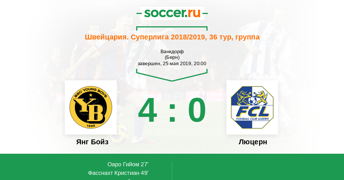 Швейцария. Суперлига 15.05.2021 Янг Бойз Логотип футбольный клуб Янг Бойз (Берн) 5:2 Логотип футбольный клуб Люцерн Люцерн