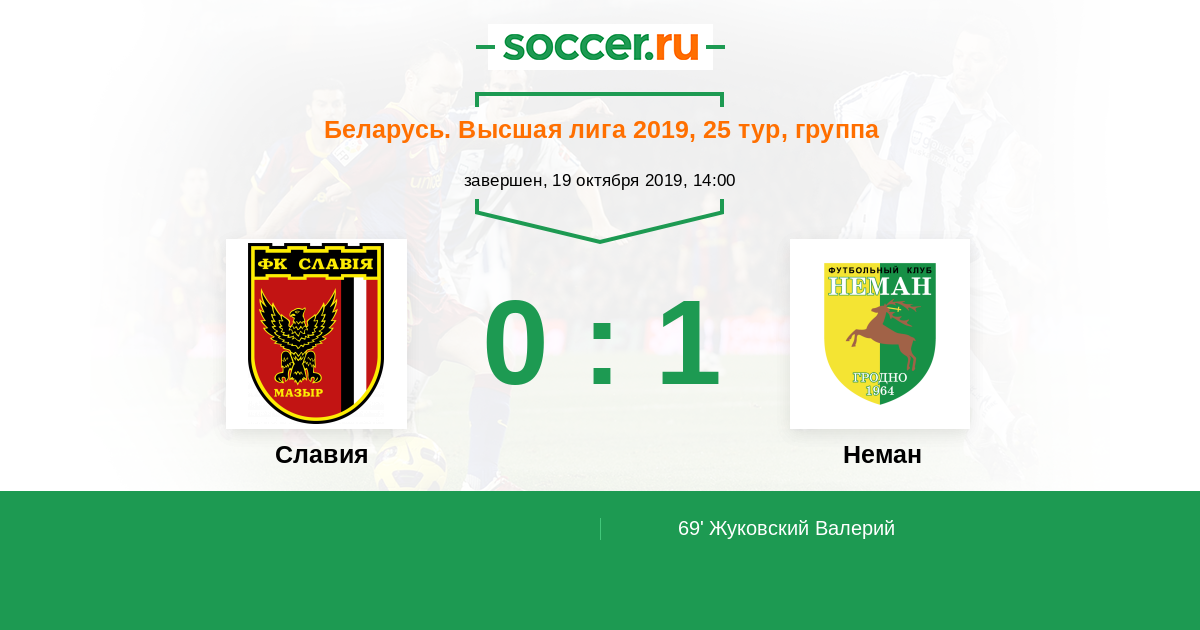 Беларусь. Высшая лига 15.06.2013 Славия Логотип футбольный клуб Славия (Мозырь) 1:0 Логотип футбольный клуб Неман (Гродно) Неман