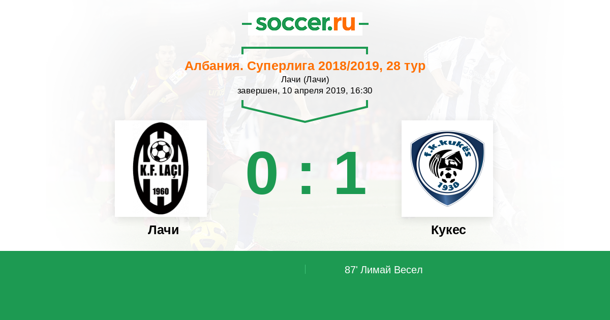 Албания. Суперлига 28.10.2018 Лачи Логотип футбольный клуб Лачи 0:1 Логотип футбольный клуб Кукес Кукес