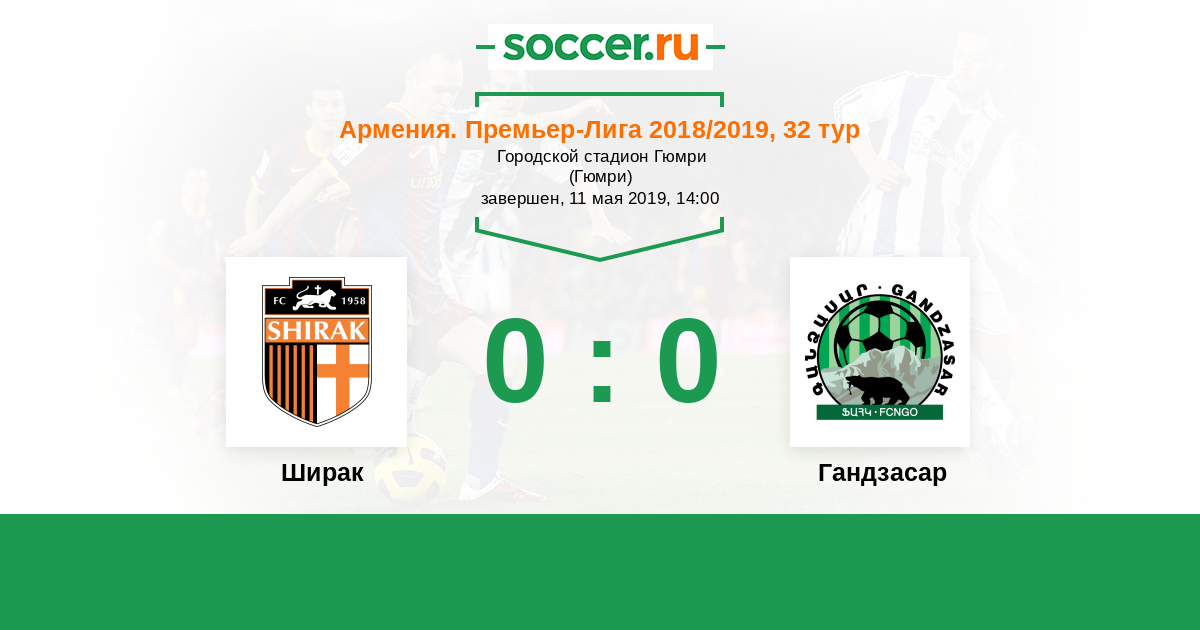 Армения. Премьер-лига 09.05.2018 Ширак Логотип футбольный клуб Ширак (Гюмри) 0:0 Логотип футбольный клуб Гандзасар (Капан) Гандзасар