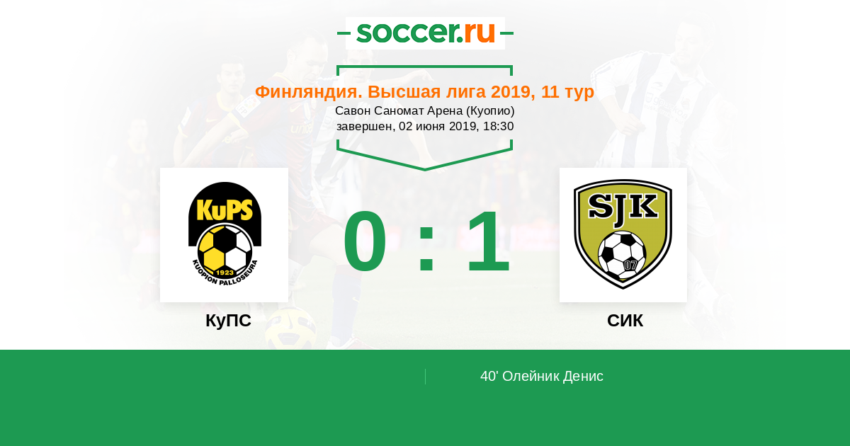 Финляндия. Высшая лига 30.06.2018 КуПС Логотип футбольный клуб КуПС (Купио) 1:1 Логотип футбольный клуб СИК (Сейняйоки) СИК