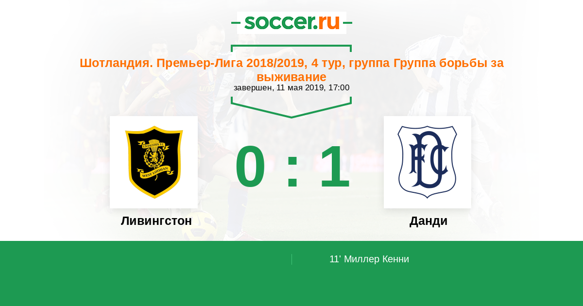 Шотландия. Премьер-Лига 20.10.2018 Ливингстон Логотип футбольный клуб Ливингстон 4:0 Логотип футбольный клуб Данди Данди